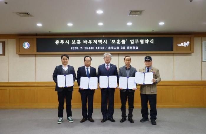 [파이낸셜경제=김기보 기자] 충주시는 25일 시청 3층 중회의실에서 70세 이상 국가보훈대상자의 이동 편의 증진을 위해 보훈대상자 바우처 택시 ‘보훈콜’사업 업무 협약을 체결했다고 밝혔다.