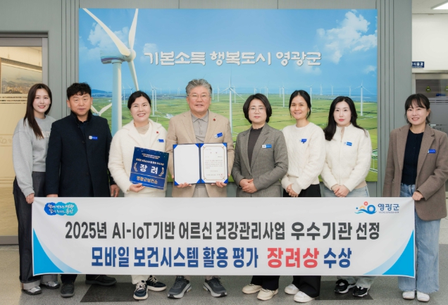[파이낸셜경제=김예빈 기자] 영광군은 12월 18일 한국사회보장정보원 주관으로 서울PJ호텔에서 열린 2025년 AI-IoT기반 어르신 건강관리사업 모바일 보건소 시스템 활용 평가 성과대회에서 장려상을 수상하며 2년 연속 우수기관으로 선정됐다.