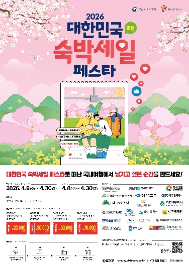 강성길 대구문화예술진흥원 관광본부장은 “이번 숙박 세일 페스타 대구편이 관광객들에게는 합리적인 여행 기회를, 지역 관광업계에는 새로운 활력을 더하는 계기가 되길 바란다”며 “따뜻한 봄날, 숙박 할인 혜택과 함께 대구만의 다양한 관광 매력을 즐겨보시길 바란다”고 말했다.
