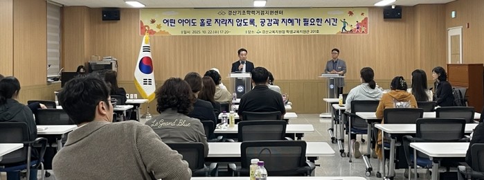 [파이낸셜경제=김지훈 기자] 경산교육지원청 경산기초학력거점지원센터는 2025년 10월 22일(수) 경산교육지원청 학생교육지원관 2강당에서 경산·청도 지역 초등학교 학부모 80여 명을 대상으로 학부모 연수회를 열었다.