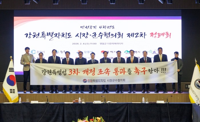 [파이낸셜경제=조성환 기자] 강원특별자치도시장군수협의회는 2026년 2월 4일 오전 11시, 영월군 ‘더 한옥헤리티지 영빈관’에서 민선8기 4차년도 제2차 정례회를 개최하고 각 시·군의 주요 현안에 대하여 심의하고 대응책을 논의했다.