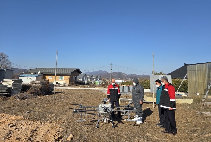 [파이낸셜경제=김기보 기자] 충주시는 7일 고병원성 조류인플루엔자 방생농장 일대에서 드론을 이용해 소독약을 살포하는 방제를 실시했다.