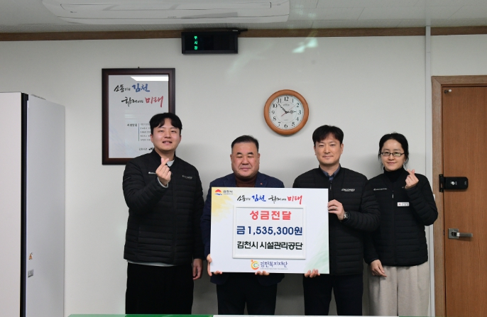 [파이낸셜경제=김지훈 기자] 김천복지재단은 지난 26일, 김천시 시설관리공단으로부터 성금 1,535,300원을 전달받았다고 밝혔다.