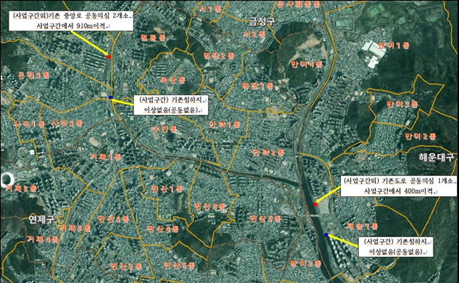 또한, 부산시는 이번 GPR탐사 이후에도 만덕~센텀 도시고속화도로 구간 지속적인 모니터링 실시 및 지반침하에 취약한 개착공사 구간(IC 주변) 주기적인 GPR탐사, 도로관리청 육안점검 시행 등 철저한 안전관리를 통하여 이상 징후 발생 시 선제적 안전조치를 통하여 시민불편을 최소화할 예정이다.