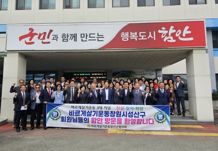 [파이낸셜경제=김예빈 기자] 바르게살기운동 함안군협의회(회장 조용찬)는 지난 21일 함안군청 중회의실에서 창원시 성산구협의회(회장 김종호)와 함께 ‘바르게살기운동 핵심회원 교류 간담회’를 개최했다.