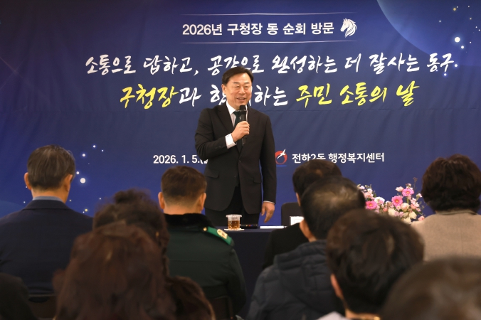 김종훈 동구청장은 1월 5일 전하2동 행정복지센터와 전하1동 행정복지센터 방문을 시작으로 관내 동 순회 방문을 시작했다. 2026년 구정 운영 방향 안내, 주민 건의 사항 질의‧답변, 새해 인사 및 덕담의 시간 등을 통해 주민과 소통하는 시간을 가졌다.