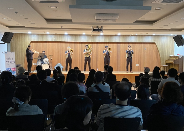 공연은 경기아트센터의 ‘2025 거리로 나온 예술’ 공모사업에 선정돼 추진됐으며, 금관 5중주 공연팀인 ‘조이브라스밴드’가 출연했다. △트럼펫 △호른 △트롬본 △튜바 등 다채로운 금관악기의 풍부한 음색이 어우러져 관객들의 큰 호응을 얻었다.