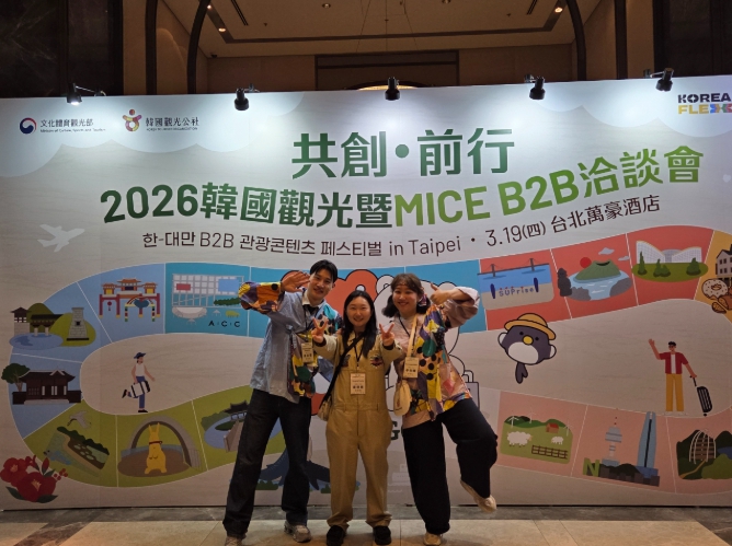 군은 19일 대만 타이베이 메리어트호텔에서 열린 ‘2026 한-대만 B2B 관광콘텐츠 페스티벌 in Taipei’에 참가해 대만 현지 여행사를 대상으로 음성품바축제 관광상품 세일즈 마케팅을 전개했다고 밝혔다.