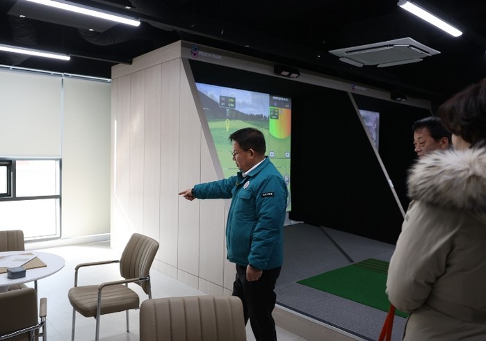 시설 내부에는 스크린 파크골프장을 갖춘 체육시설 공간과 커피·차를 즐길 수 있는 카페형 공간, 바둑·장기·보드게임 등을 할 수 있는 놀이공간 등이 마련돼 있다.