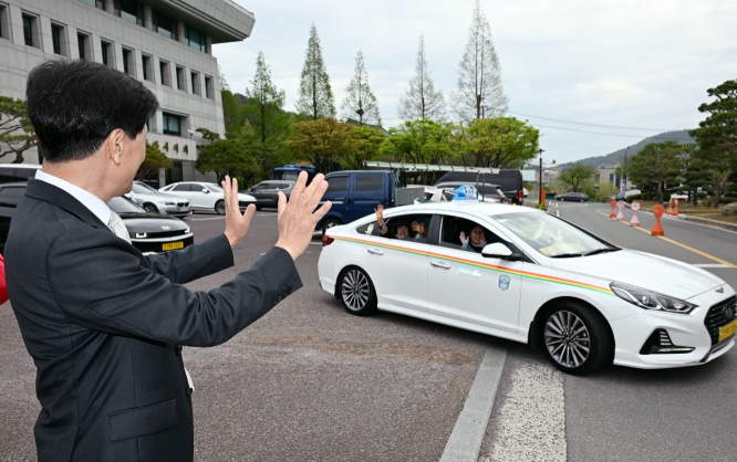 이날 행사는 어르신 60명을 비롯해 자원봉사자 20명, 모범운전자회 회원 30명 등 총 110명이 참여했으며, 택시 20대와 승합차 1대를 이용해 안전하게 진행됐다.