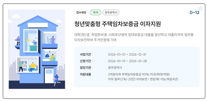 | ▲ 광주광역시, 청년 임차보증금 이자지원 대상자 모집 |