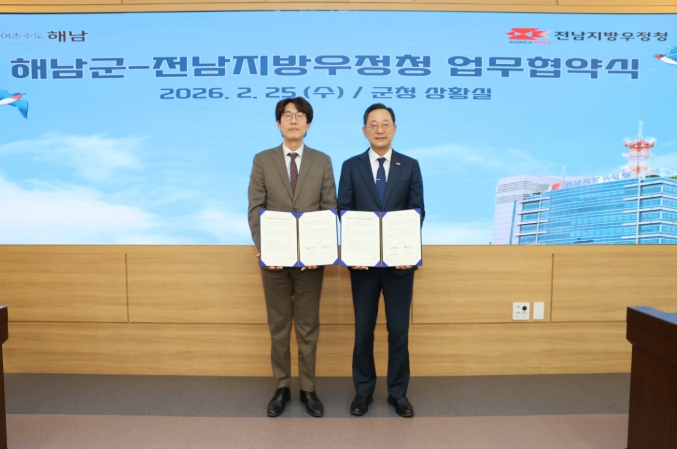 [파이낸셜경제=김예빈 기자] 해남군은 25일 전남지방우정청과 해남 농수축산물의 온라인 판로 확대와 유통 활성화를 위한 업무협약을 체결했다.
