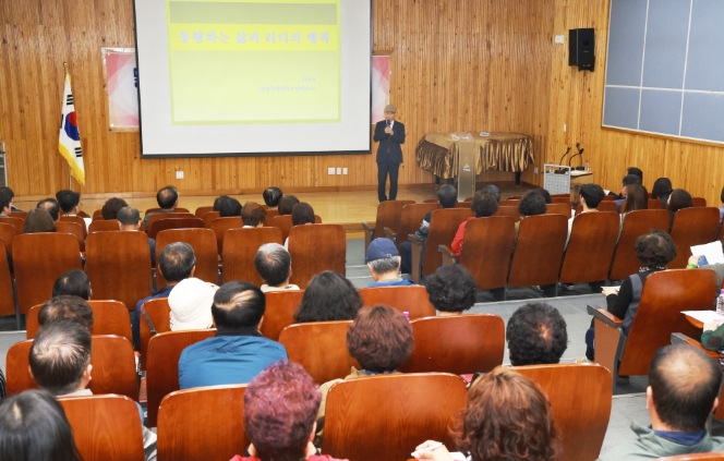 한 교수는 고독사 예방을 위한 이웃의 역할과 지역 리더가 가져야 할 공동체 의식, 행복한 마음가짐에 대해 강조하며 참석자들의 공감을 이끌어냈다.