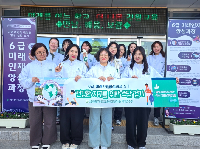[파이낸셜경제=조성환 기자] 강원특별자치도교육청교육연수원은 4월 13일, ‘6급 미래인재양성과정 5기’ 연수생들과 함께 지역 생태 자산의 가치를 보존하고 기후 위기 대응을 실천하기 위한 ‘건강한 지구를 위한 환경봉사 쓰담걷기’ 프로그램을 운영했다.