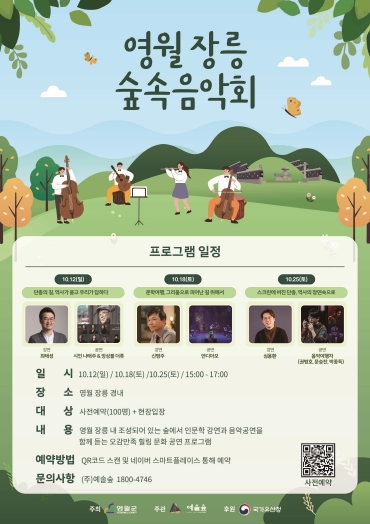 [파이낸셜경제=조성환 기자] 영월군은 오는 10월 12일, 18일, 25일 오후 3시부터 5시까지 세계유산 장릉 경내에서 ‘영월 장릉 숲속 음악회’를 개최한다.
