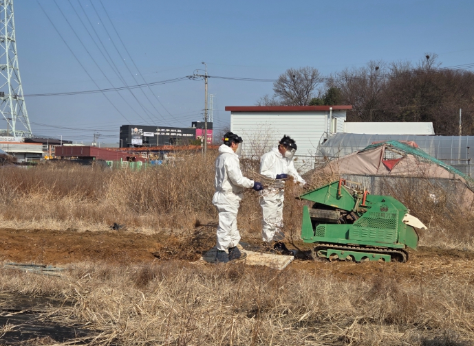 김포시농업기술센터는 2인 1조 5개 팀을 운영해 작년 12월에 파쇄 신청을 받은 745농가 중 약 89%에 해당하는 664농가 884필지 107ha에 지원했다. 산에 인접하거나 고령자 순으로 대상자를 선정했으며, 미지원 농가는 신김포농협의 무상지원 파쇄기를 활용해 직접 파쇄했다.