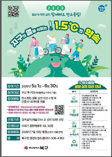 북구 관계자는 “기후위기 대응은 일상에서의 작은 실천이 중요하다”며 “이번 사업이 구민들의 자발적인 탄소중립 실천을 이끄는 계기가 되길 바란다”고 전했다.