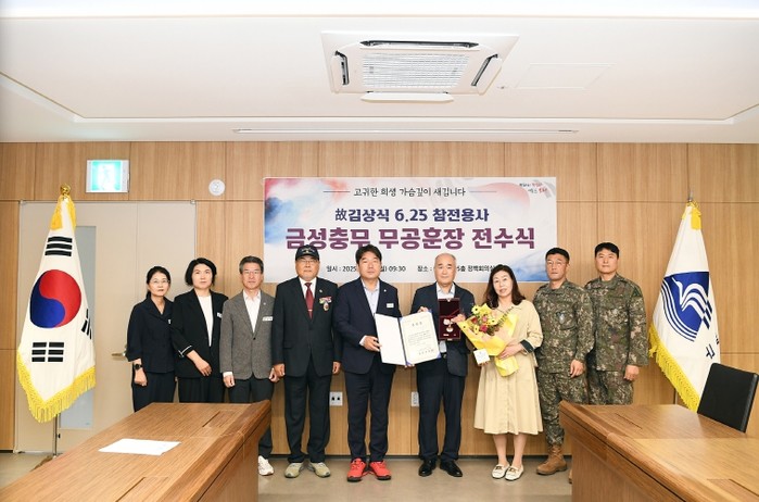 [파이낸셜경제=박영진 기자] 부산 동래구는 지난 13일 6․25전쟁에 참전해 무공을 세운 고(故) 김상식님의 자녀 김형원씨에게 금성충무 무공훈장과 훈장증을 전수했다.