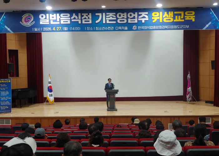 [파이낸셜경제=김지훈 기자] 청도군은 27일 청소년수련관 다목적홀에서 2026년도 일반음식점 기존 영업주 위생교육을 실시했다.