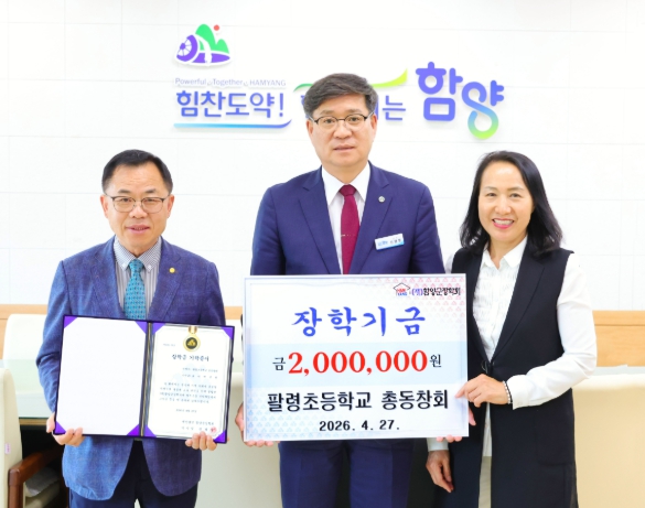 [파이낸셜경제=김예빈 기자] (재)함양군장학회는 4월 27일 팔령초등학교 총동창회(회장 박갑열)가 지역 인재 육성을 위한 장학금 200만 원을 기탁했다고 밝혔다.