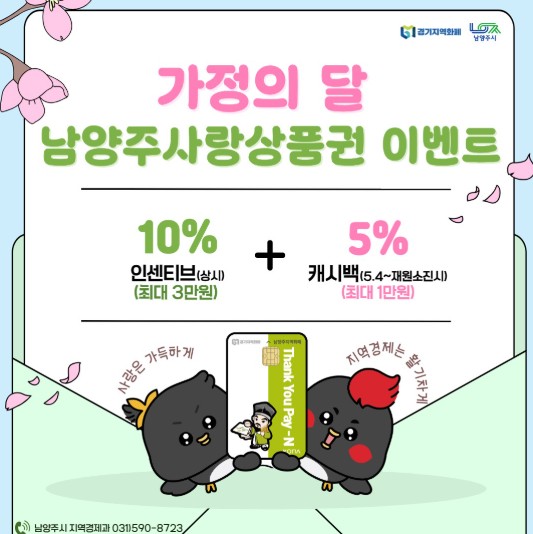 | ▲ 남양주시, 5월 가정의 달 ‘지역화폐 15% 혜택’…10% 인센티브 유지·5% 추가 캐시백 |