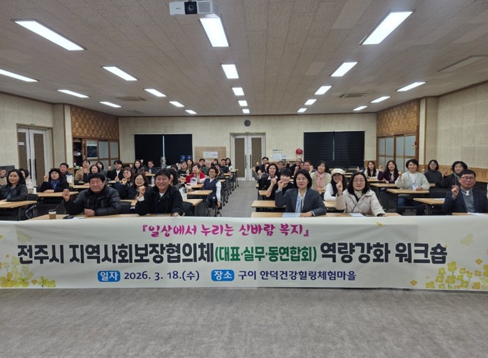 전주시 지역사회보장협의체(이하 협의체)는 18일 완주군 안덕건강힐링체험마을에서 대표·실무·동 위원장 연합회 위원 80여 명이 참석한 가운데 ‘일상에서 누리는 신바람 복지’를 주제로 역량 강화 워크숍을 개최했다.