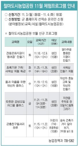 | ▲ 기장군 철마도시농업공원, 11월 체험프로그램 운영 |