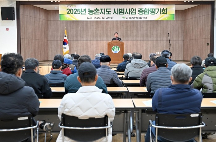 [파이낸셜경제=김지훈 기자] 군위군농업기술센터는 2025년 12월 22일 농촌지도 시범사업의 성과를 분석하고 향후 농촌지도사업의 발전 방향을 모색하는 ‘2025 농촌지도 시범사업 종합평가회’를 개최했다. 이번 평가회는 농업인, 공무원, 관계 전문가 등 총 120명이 참석한 가운데 농촌지도사업의 실효성과 개선점을 논의하는 중요한 자리였다.