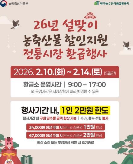 이번 행사는 농림축산식품부와 해양수산부 주관으로 2월 10일부터 2월 14일까지 닷새 동안 진행된다.
