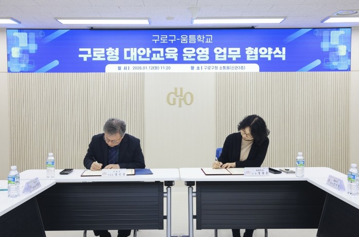 [파이낸셜경제=김예빈 기자] 구로구가 1월 12일 구청 소통홀에서 움틈학교와 ‘구로형 대안교육 운영’에 관한 업무협약을 체결하고, 이주배경 청소년을 위한 대안교육 지원 사업을 본격 추진한다. 이번 협약은 언어와 문화적 차이로 학업에 어려움을 겪는 청소년에게 안정적인 학습 기회를 제공하고 사회 적응을 돕기 위해 마련됐다.