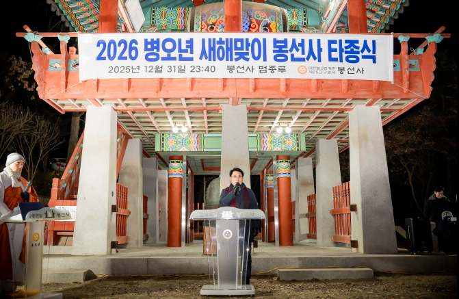 남양주시의회(의장 조성대)는 31일 진접읍에 위치한 대한불교조계종 제25교구 봉선사(주지 호산스님)에서 열린‘2026년 봉선사 새해맞이 타종식’에 참석해 시민들과 함께 병오년(丙午年) 새해의 힘찬 출발을 함께했다.