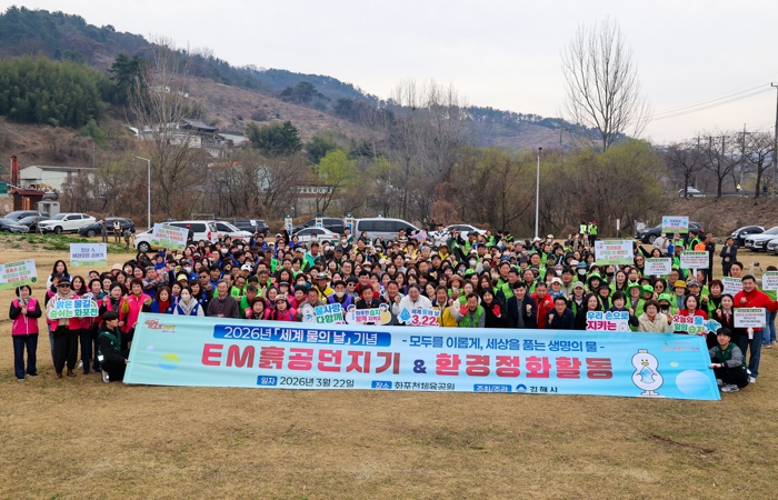 이날 행사에는 김해시장을 비롯한 자연보호연맹 등 주요 환경단체와 한림면 주민, 공무원 등 500여 명이 참여해 유용 미생물(EM) 발효액과 황토를 배합해 만든 ‘EM 흙공’ 1,000여 개를 하천에 투척했다.