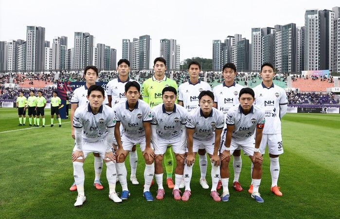 ▲ 10월 18일 안양 원정에서 김천상무 선발 선수들이 사진을 찍고 있다 |