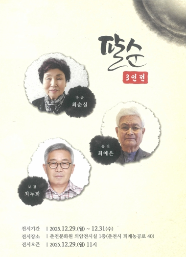29일부터 31일까지 춘천문화원 의암전시실 1층(춘천시 퇴계농공로 40)에서 열리는 이번 전시회는 누구나 무료로 관람할 수 있다. 전시 오픈 행사는 29일 오전 11시로 예정됐다.