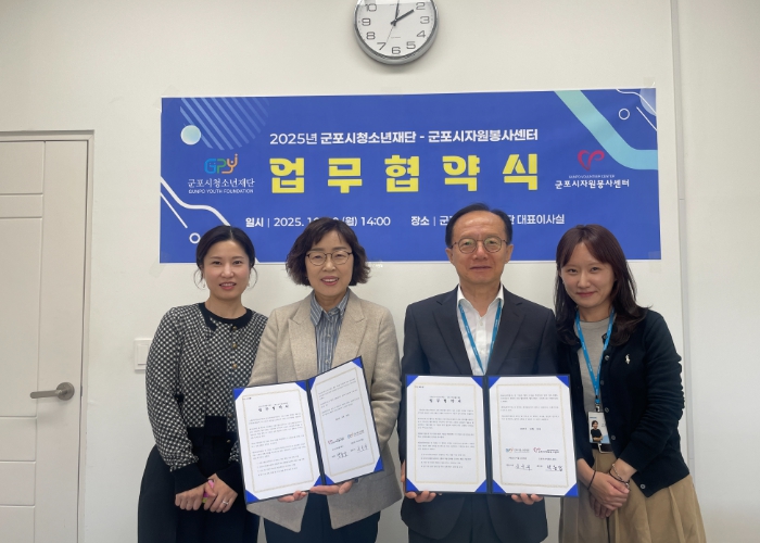 [파이낸셜경제=김기보 기자] 군포시청소년재단은 10월 20일 군포시청소년재단 대표이사실에서 군포시자원봉사센터와 지역사회 상생 및 자원봉사 활성화를 위한 업무협약을 체결했다.