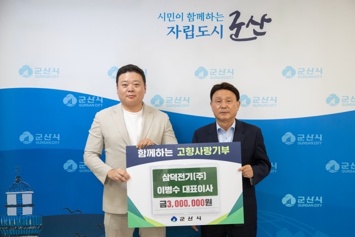 [파이낸셜경제=김예빈 기자] 군산시는 삼덕전기(주) 이병수 대표이사가 고향사랑기부금 300만 원을 기탁했다고 밝혔다.