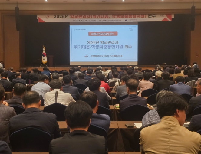 [파이낸셜경제=조성환 기자] 강원특별자치도교육청은 4월 20일부터 21일까지 이틀간 알펜시아 리조트 컨벤션센터에서 도내 초·중·고·특수학교 교장·교감을 대상으로 ‘2026년 학교관리자 위기(자해·자살)관리 대응 및 학생맞춤통합지원 연수’를 운영한다.