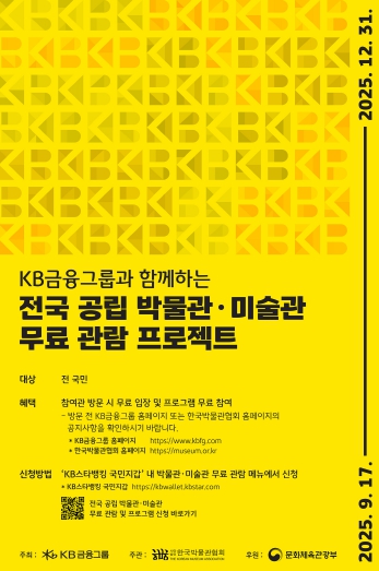 이 사업은 KB금융그룹의 후원을 받아 12월 31일까지 진행되며, 박물관 관람객들에게 입장료와 체험 프로그램을 무료로 제공한다. KB 국민은행 모바일 애플리케이션으로 참여하여 혜택받을 수 있으며, 참여 방법은 ‘KB스타뱅킹’ 속 국민지갑에서 ‘전국 공립 박물관·미술관 무료관람’ 메뉴로 접속해 신청하면 된다.