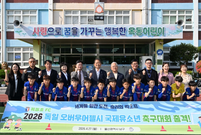 [파이낸셜경제=김예빈 기자] 울산 남구는 다음달 독일 오버우어젤시에서 열리는 ‘2026 국제유소년 축구대회’ 참가를 앞두고 있는 옥동초 FC 선수단을 찾아 격려의 시간을 가졌다.