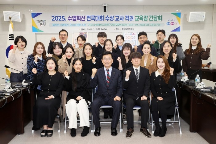[파이낸셜경제=김기보 기자] 충청북도교육청은 5일, 2025학년도 수업혁신 분야 전국대회 수상 교사를 초청해 교육감실에서 간담회를 열고, 교실수업 혁신성과를 거둔 교사들을 격려했다.
