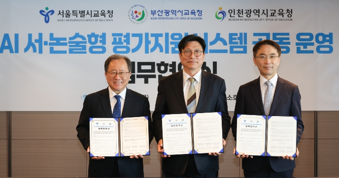 [파이낸셜경제=김기보 기자] 인천광역시교육청은 26일 서울특별시교육청 및 부산광역시교육청과 ‘AI 서·논술형 평가지원시스템’의 공동 운영을 위한 업무협약을 체결했다.
