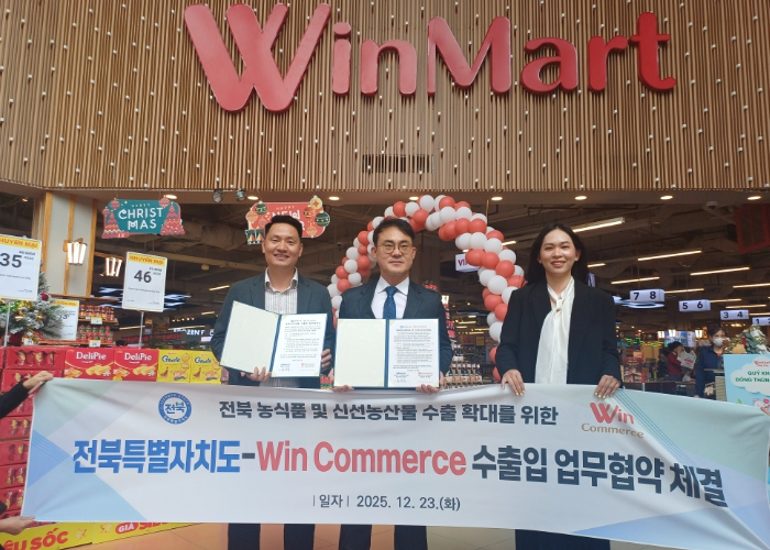 베트남 최대 유통 리테일 기업인 윈커머스(Win Commerce) 본사를 방문해 전북 농식품 전반의 판로 확대를 위한 협약도 체결했다. 현지에서 3,600여 개의 윈마트(WinMart)와 윈마트+(WinMart+) 매장을 운영 중인 윈커머스는 전북의 경쟁력 있는 신선농산물과 가공식품을 전국 유통망에 입점시키고, 전북도는 고품질 제품의 안정적 공급과 현지 마케팅을 지원하기로 했다.