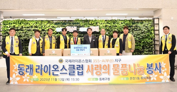 장준용 동래구청장은 “이웃을 위한 따뜻한 나눔에 감사드리며, 기탁된 물품은 도움이 필요한 온천1동의 취약계층에 전달하겠다”라고 말했다.