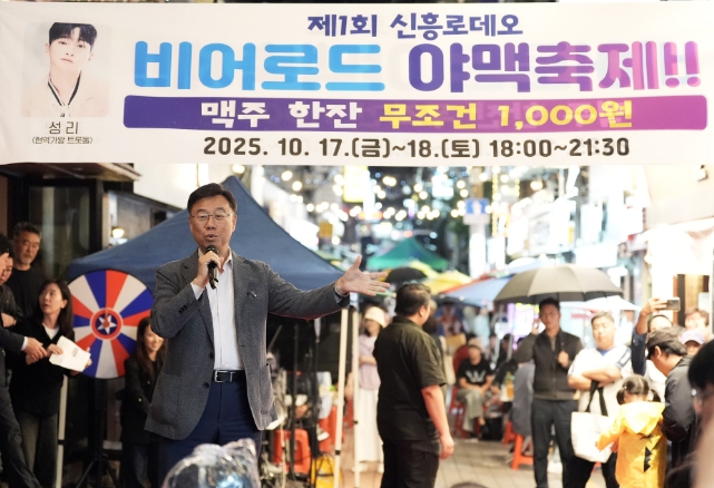 [파이낸셜경제=김기보 기자] 신상진 성남시장은 17일 저녁 신흥로데오거리 종합시장 먹자골목에서 열린 ‘제1회 신흥로데오 비어로드 야맥축제’ 개막식에 참석해 관계자들을 격려하고 시민들과 소통했다.